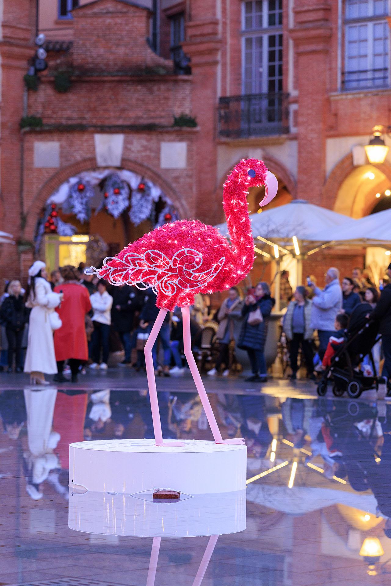 Dans ce lieu emblématique chargé d’histoire, l’architecture classique dialogue avec une mise en lumière contemporaine. Les silhouettes fines et délicates des flamants imaginées par Blachere Illumination, se reflètent dans l’eau, offrant un décor féerique qui attire habitants et visiteurs. Une installation qui fait battre le cœur de la ville et transforme la place en véritable tableau lumineux.
