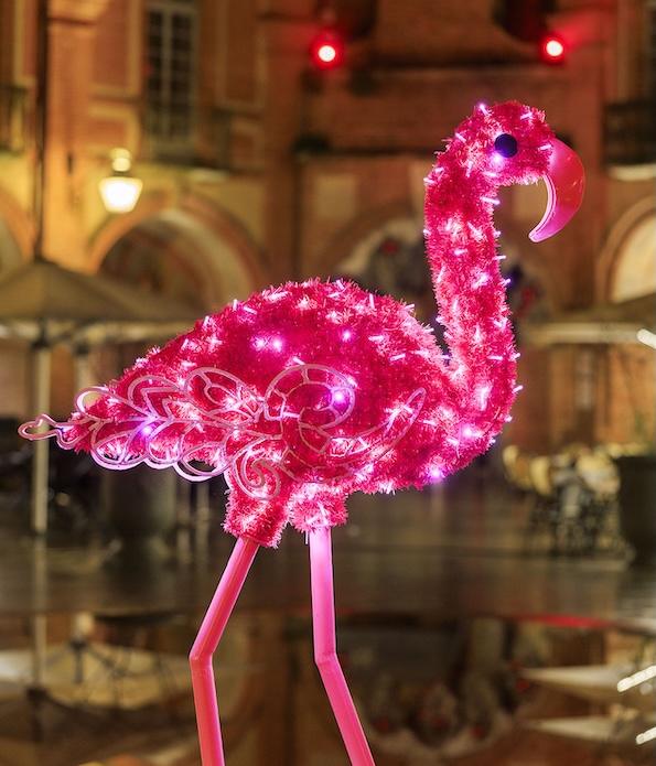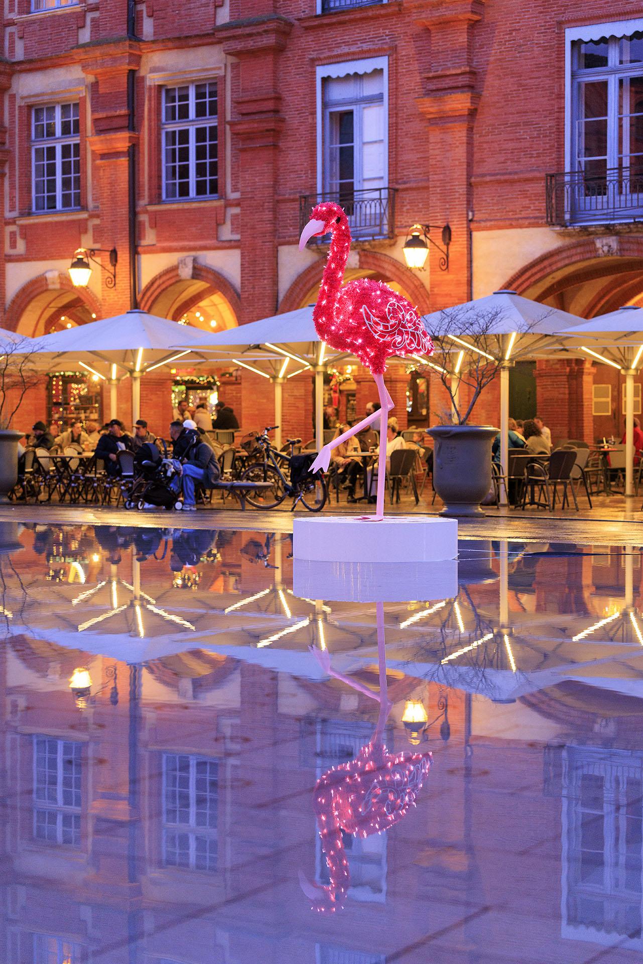 Au cœur du centre ancien, de gracieux flamants roses lumineux prennent place sur le miroir d’eau de la Place Nationale, créant un spectacle poétique et inattendu.