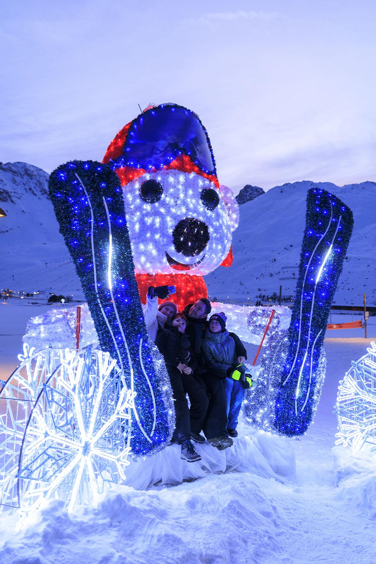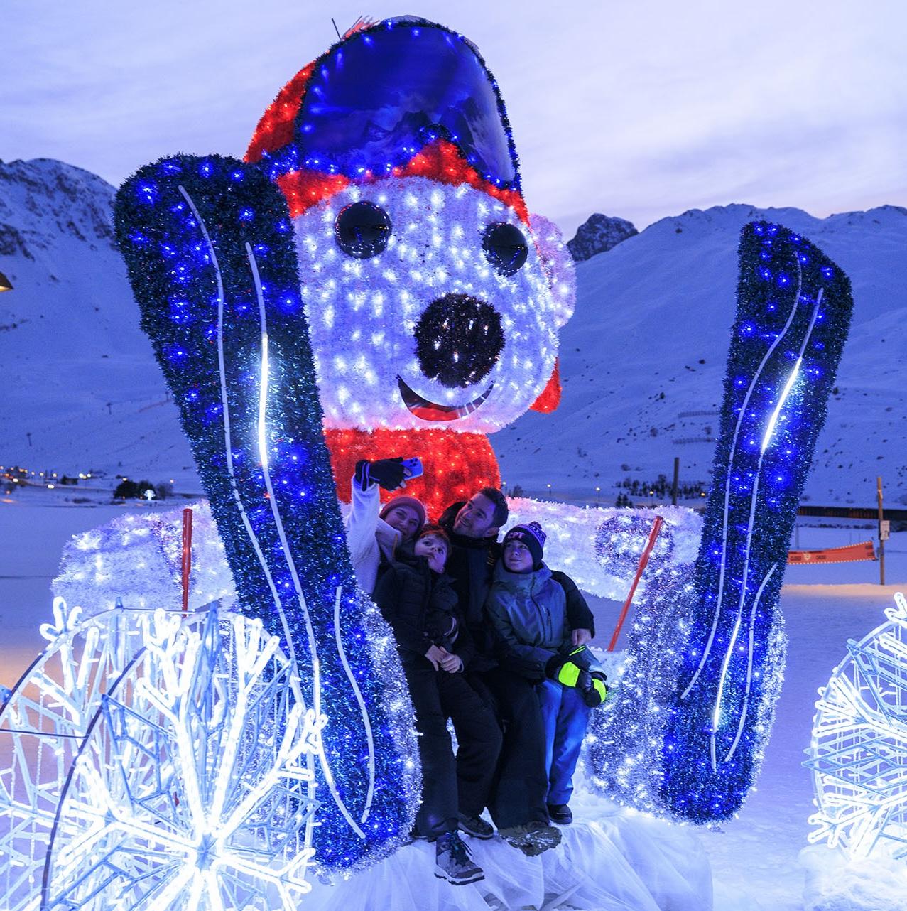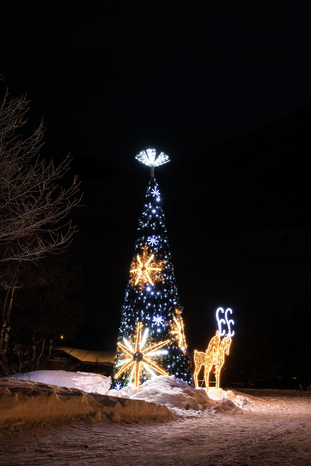 Entre architecture de montagne et atmosphère nordique, la ville se transforme en un décor féérique où habitants, skieurs et visiteurs partagent des instants lumineux après une journée sur les pistes.