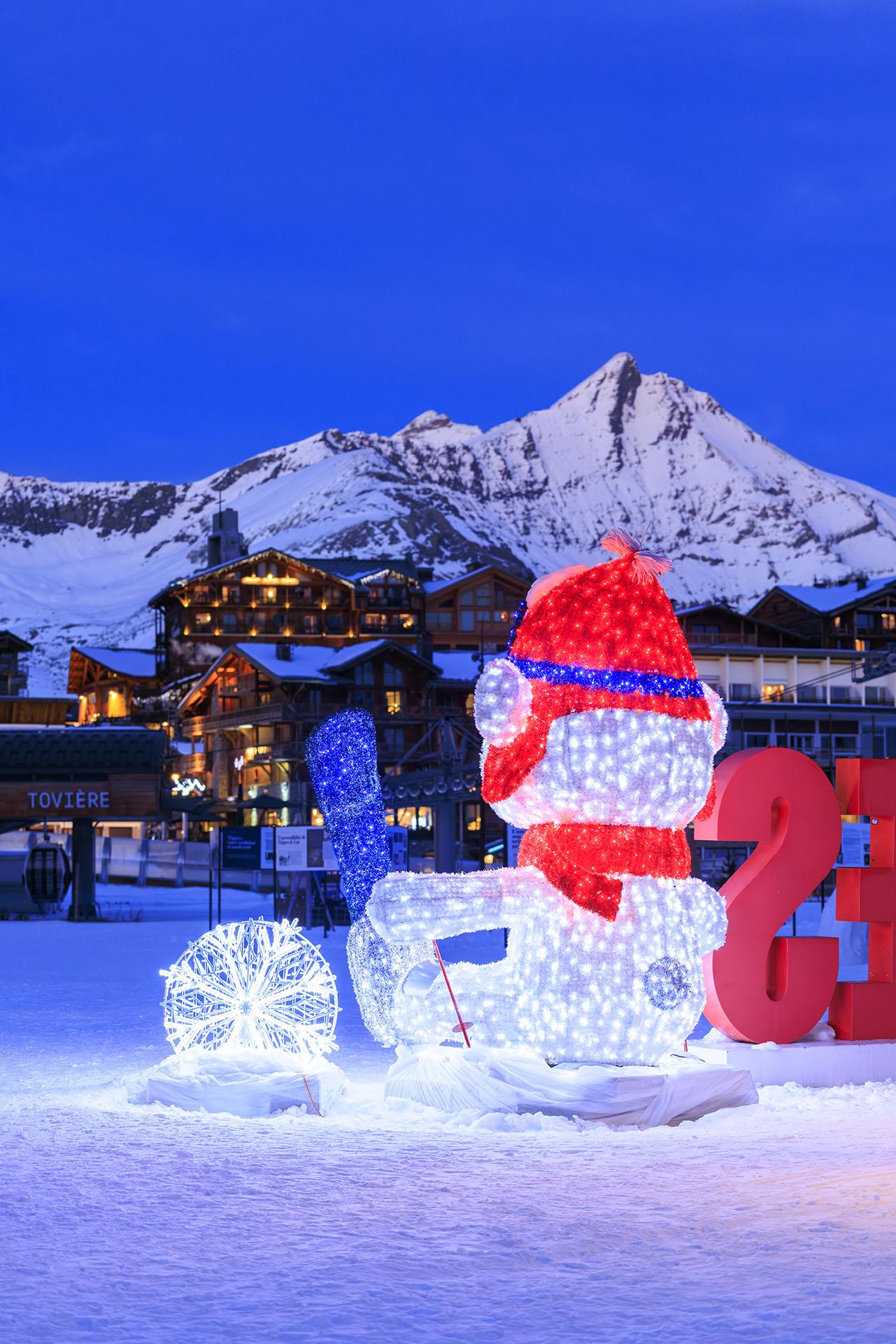 Sous son manteau de neige immaculée, Tignes nous éblouit… autant par son blanc éclatant que par ses illuminations polaires qui réchauffent les cœurs et feraient presque oublier les températures négatives.
